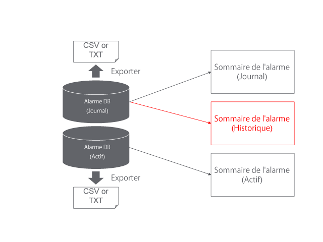 l'objet de résumé d'alarme affiche les données stockées dans le champ [Enregistrer dans] spécifié. Si vous réglez [Opération lorsque [Enregistrer dans] est plein] sur [Remplacer les anciennes données], les données supprimées ne sont pas affichées. Notez que les alarmes et les erreurs système des groupes d'alarmes qui ne sont pas affichées dans l'objet Résumé d'alarme peuvent également entraîner un dépassement du nombre d'enregistrements de l'historique des alarmes [Nombre maximum d'enregistrements], ce qui entraîne la suppression des données.