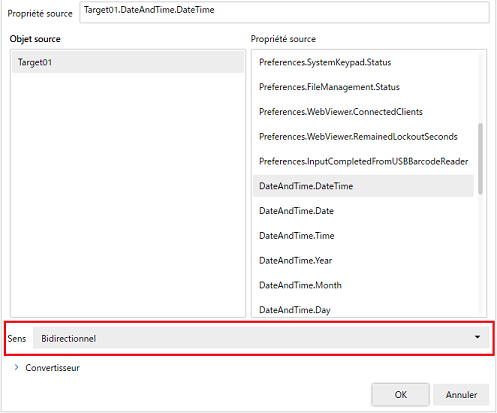 La liaison de données vous permet de choisir la direction dans laquelle les valeurs de propriété sont reflétées entre la cible de liaison et la source de liaison.