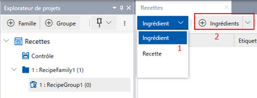 Ajoutez les ingrédients suivants à [RecipeGroup1].