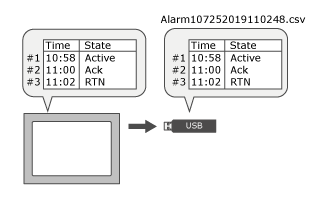 Vous pouvez utiliser cette opération de script pour exporter le journal d'alarmes vers un fichier CSV ou TXT.