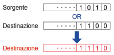 | [OR] | Scrive il valore OR (somma logica) tra il numero intero o la proprietà della sorgente specificata nella [Sorgente] e la proprietà della sorgente specificata nella [Destinazione] e copia il risultato nella proprietà della sorgente di destinazione. ![]() |