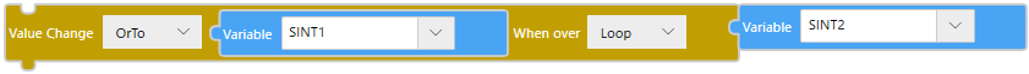 Blocco![]() TestochangeValue($Enums.WhenOver.Loop, $Enums.AssignmentOperator.OrTo, SINT1, SINT2); |