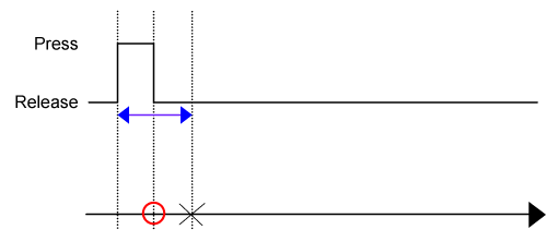 Se per lo stesso oggetto sono stati specificati entrambi i trigger [Press] e [Release] e se l’oggetto viene rilasciato prima che sia trascorso il tempo di ritardo di [Press] il trigger [Release] viene eseguito, ma non il trigger [Press].