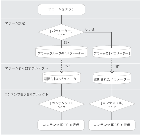 タッチしたアラームに対して次の判定が行なわれます。