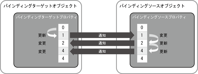 データバインディングを使用して、バインディングターゲットとバインディングソースの間でプロパティの値を反映させる方向を選択できます。