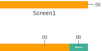 | 画面 1、2、5 | (1): 第 1 階層マスター画面のヘッダー / フッター(2): スライドナビゲーションスイッチ |