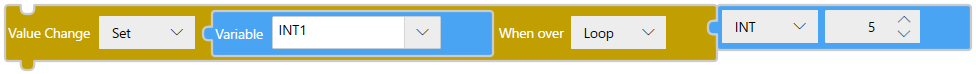 ブロックテキストchangeValue($Enums.WhenOver.Loop, $Enums.AssignmentOperator.Set, INT1, 5); |