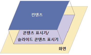 [화면]은 디스플레이 장치에 직접 표시되고 [컨텐츠]는 화면에 로드되어 표시됩니다.