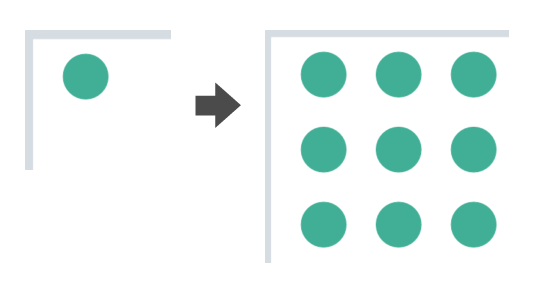 [指定范围] | 选择[设置间隔]或[使用鼠标设置]。 [设置间隔]:使用定义的[间隔]在[X 方向]和[Y 方向]上制作定义的份数。 [使用鼠标设置]:使用鼠标定义一个区域,以便复制项可以在不重叠的情况下适合该区域。 使用[网格]、[滚动网格]、[停靠面板]、[堆栈面板]或[均匀网格]布局时,[指定范围]属性不可用。 |