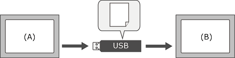 将包含从人机界面 (A) 生成的文件 Package.BML 的外部存储插入人机界面 (B)。