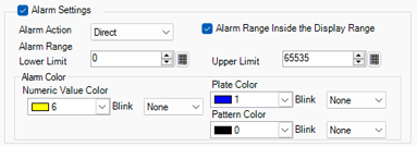 If [Alarm Action] is [Direct], specify whether the source range of the lower limit and the upper limit is within the [Display Range] in the [Basic] tab. Once selected, you can specify only within the Display Range. Also, enter the lower and upper limit values.