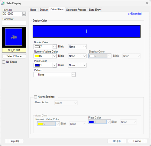When the [Alarm Action] is [Change Color], input the bit address which acts as a trigger for the color change. When this bit turns ON, the color change will occur.