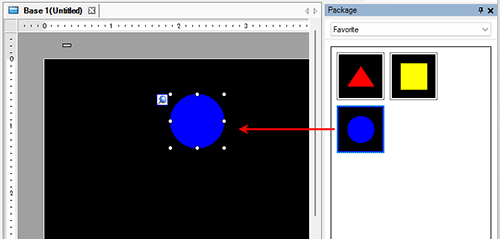 You can place graphics registered in the package by dragging and dropping on the screen.