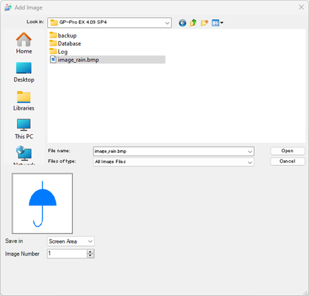 Click [Add]. The [Add Image] dialog box appears. Select a graphic and click [Open].