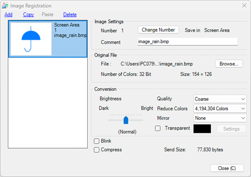 If required, add comments to images, set the brightness or colors, and then click [Close] . Image registration is complete.