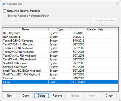 In the [Package] dialog box, select the package name to register and click [Open]. (For example, figure)