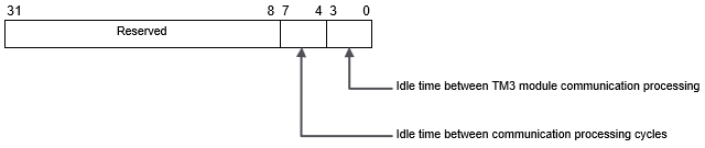 Set the idle time between TM3 module communication processing between 0 ms and 15 ms in increments of 1 ms. If the value is 0, the idle time is handled as 1 ms as an exception. The default value is 0.