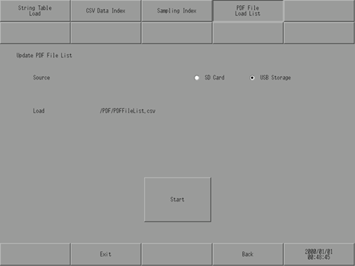 The PDF file list must be saved in the "PDF" folder directly under the external storage with the fixed name "PDFFileList.csv".