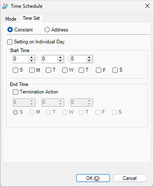 Specifies the address which stores the data for the time and day. You can change the time and day by changing the data to store.
