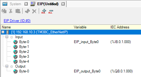 The [IEC Address] is populated after entering a variable. IEC address format is %AB.C.D.E. For more details, please refer to the following. For EtherNet/IP, D refers to the device number.