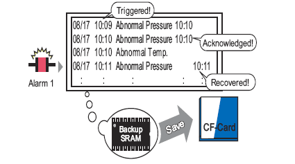 You can save the alarm history, which is stored in the display unit's backup memory (SRAM), to the external storage.