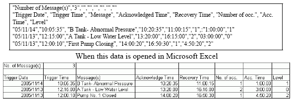 Saved in CSV format, you can edit the alarm data with any spreadsheet application such as Microsoft Excel.