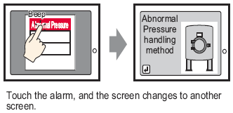 Set the Switch to change from the Sub Display screen to the Alarm Part placement screen. From the [Parts (P)] menu, point to [Switch/Lamp (C)] and select [Change Screen Switch (C)] or click