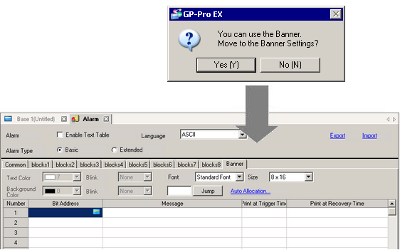 When the following notice message appears, click [Yes]. The [Banner] tab is displayed.
