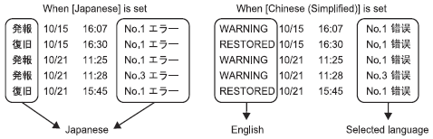 When this is set to a language other than Japanese (set to ASCII, Chinese (Simplified), Korean, Chinese (Traditional), Russian (Cyrillic) or Thai), it will be output in English.