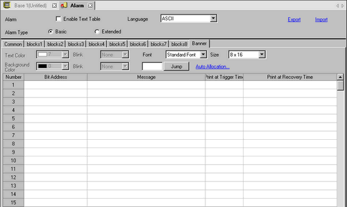Set the number of Bit Addresses (from 1 to Alarm limit - Current row position + 1) for Auto Allocation.