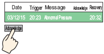 Alarms that have already recovered will not change when [Acknowledge] is touched.