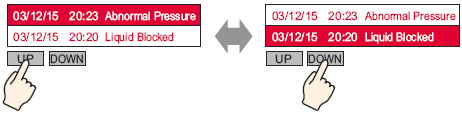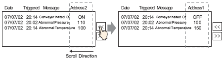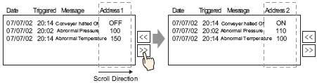 Displays Alarm Messages in the order of occurrence, according to the scroll direction.