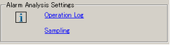 This is displayed when you define one of the switches for Alarm Analysis.If you click one of these options, alarm parts setting dialog box closes and the [Common Settings] menu's [Operation Log] or [Sampling] setting dialog box appears.