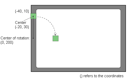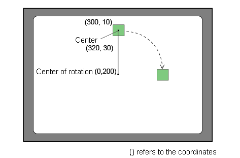 For the [Rotation Center], specify the center of rotation, relative to the center of the object, in X and Y coordinates. By offsetting the [Rotation Center] from the center of the object, you can rotate an object in a circle.