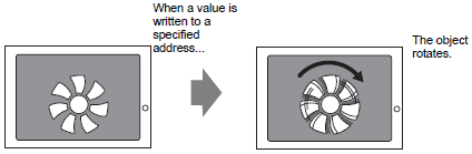 By rotating objects, you can show the rotation of equipment such as a fan or motor, as well as the movement of a needle in a meter, to follow actual changes in value.