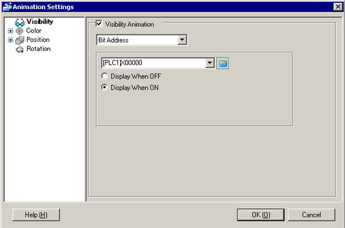 Visibility animation is based on the ON/OFF value of the specified bit address.