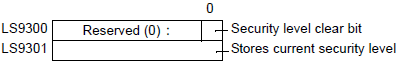 When bit 0 of LS9300 toggles from OFF to ON, the security level stored in LS9301 changes to 0.