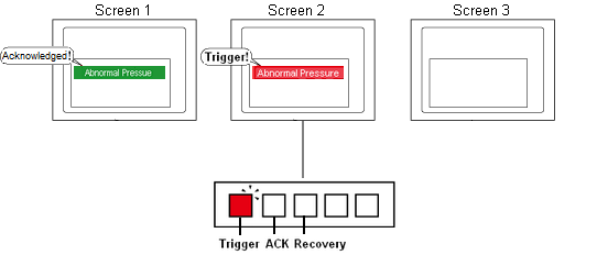 Monitor/operate all alarm history in the display unit with the EZ Illuminated Switch. Assign alarm status (one from either triggered/acknowledged/recovered) to separate switches on the EZ Illuminated Switch.