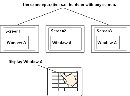 In this example, the [F1] key is set up as a global function key with a Window Display Switch operation.