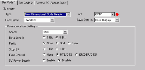 From the [Type] drop-down list, select [Two-Dimensional Code Reader].