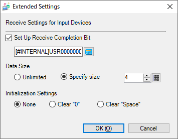 Click [Extended] to configure the [Set Up Receive Completion Bit], [Data Size] and [Initialization Settings]. For [Specify size], set the size of the data to read in bytes.