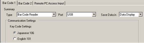 From the [Type] drop-down list, select [Bar Code Reader]. For the [Port], select [USB]. For [Save Data in], select [Data Display].