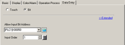 Click the [Data Entry] tab and select [Bit]. Set the [Allow Input Bit Address]. Data input is enabled when this bit address is ON.