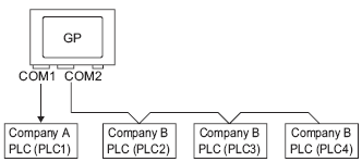 For example, Company A's PLC is connected to COM1 by the direct access method, and the micro-computer board is connected to COM2 by the memory link method.