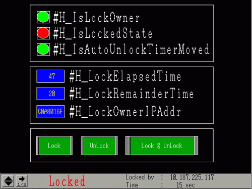 Because the lock status is not shown in the unlocked display unit, it cannot be checked from the display unit even if it is locked unintentionally. to check the status in the unlocked display unit, add Lamp Feature to Operation Lock Switch. Assign the system variable "#H_IsLockOwner" to Lamp Feature to set the status so that lock and unlock can be switched, and you can check the lock status from the unlocked display unit.