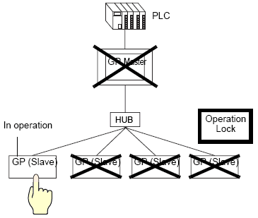 With the operation lock function, regardless of whether it is a Master display unit, Slave display unit or GP-Viewer EX, the first display unit operated will be the unlocked display unit and touch operation of the other display units will be locked.