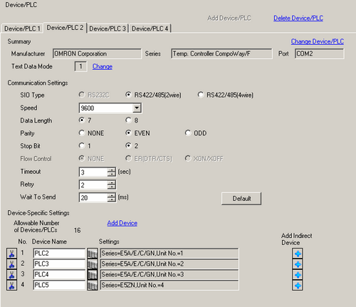 Set up the indirect device/PLC. In the [System Settings], click [Device/PLC] and open the [Device/PLC 2] tab.