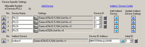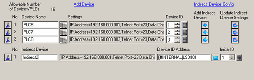 The indirect device line appears and the [Device ID] fields are added to [PLC6], [PLC7] and [PLC8].