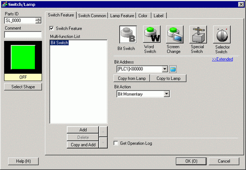 On the [Parts (P)] menu, point to [Switch Lamp], and select [Bit Switch (B)], or click
