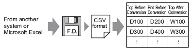 You can use a previously saved file in CSV format to create an address conversion pattern file (see Export).